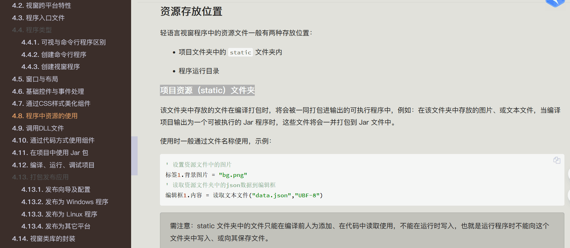 看了下IDE中视窗平台示例,关于 项目资源(static)文件夹 内别的类型文件的读取方法,是可以只用相对路径 的.