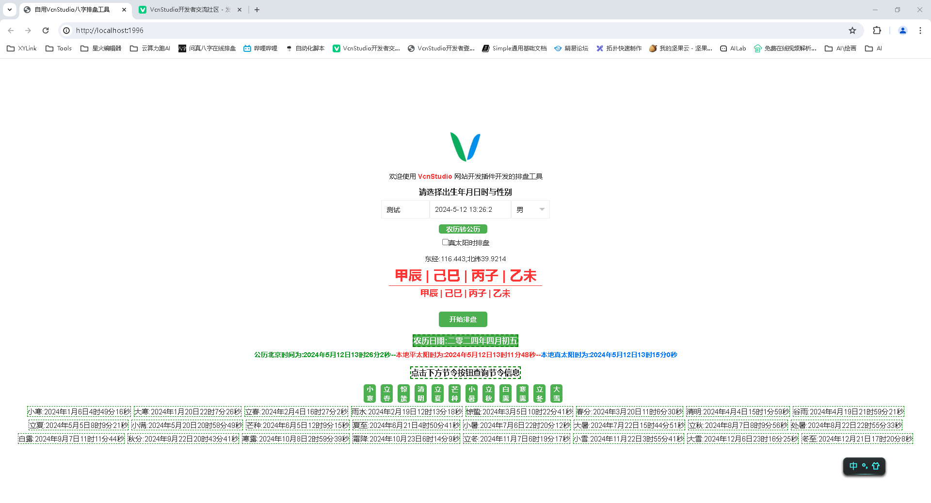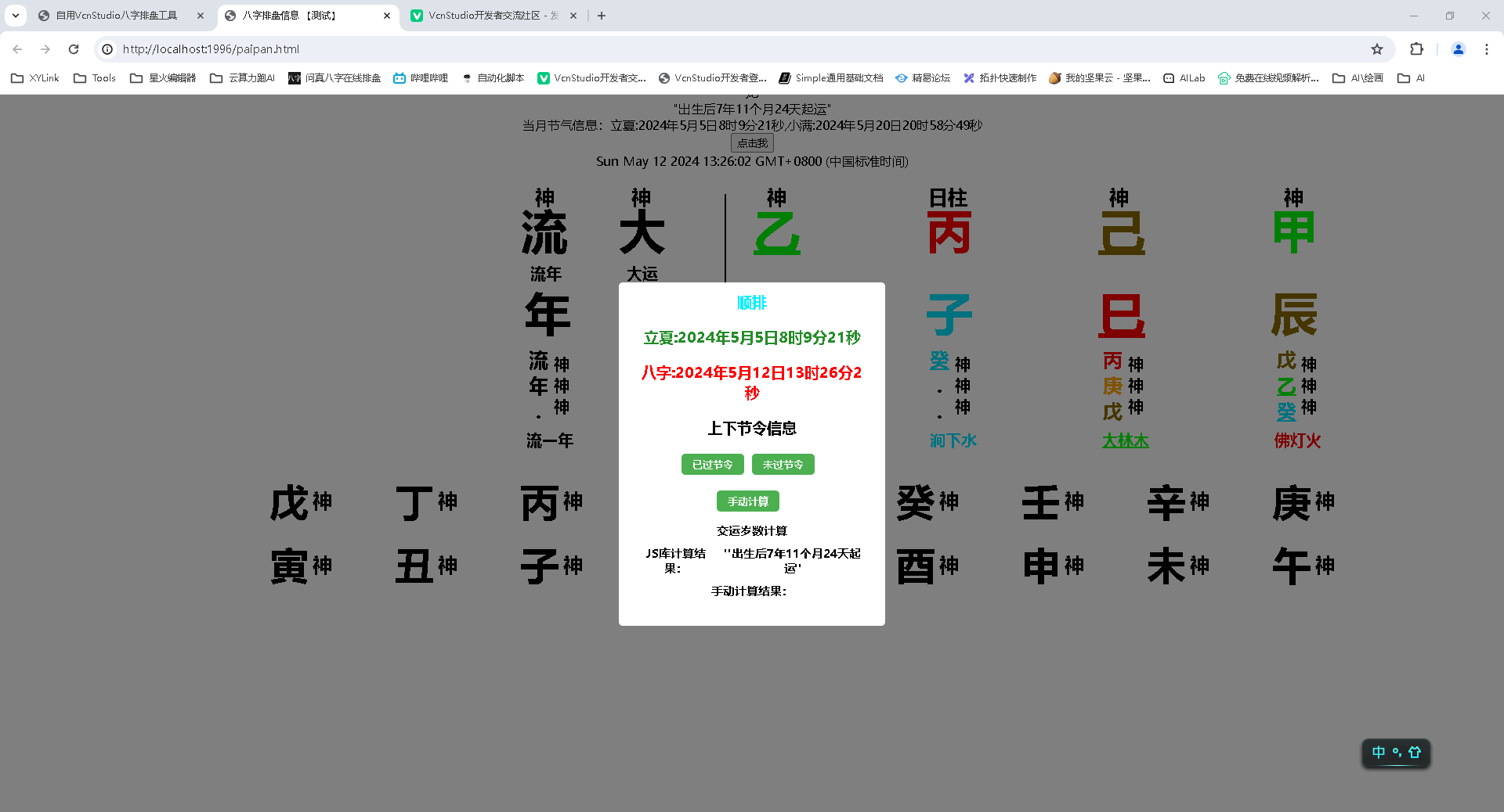 由于上班时间原因中途断断续续的不知不觉已经完善到%90了开心呀,现在就差十神了(十神JS库已经写好了还未调用)也遇到很多问题感谢老大与群还有论坛帮忙解答的大神。